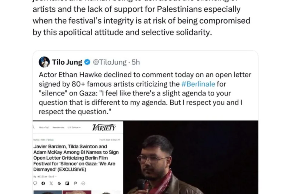 The Berlin International Film Festival served as the location for the interview exchange. When asked about the silencing of artists and support for Palestinians, Hawke reportedly told the journalist, โI feel like thereโs a slight agenda to your question.โ